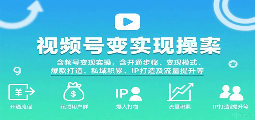 本课程围绕视频号从0到1变现全流程展开,涵盖基础操作(开通、功能解析、账号设置)、核心能力(爆款内容生产、AI文案工具运用、剪辑教学)、多元变现(创作者分成、商单、橱窗带货、私域转化)及进阶运营(算法机制、起号涨粉、个人IP打造)。针对完播率、点赞量等关键数据提升提供具体方法,还包含1000铁粉积累、合规引流等实操技巧,从基础到高阶,助力普通人快速掌握视频号变现逻辑与实战能力。
