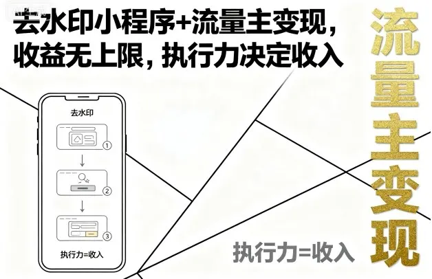 去水印小程序+流量主变现,收益无上限,执行力决定收入